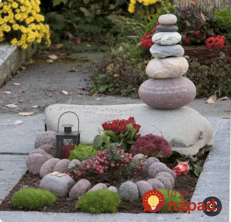 Medzi kamienky potom môžete umiestniť lucerničky so sviečkami alebo iné dekorácie – celoročne budú vyzerať pekne napríklad kamenné gule alebo rôzne sošky podľa vášho vkusu.