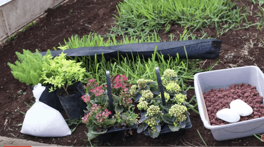 Nachystáme si všetko potrebné – kamene, keramzit, rastlinky a fóliu.