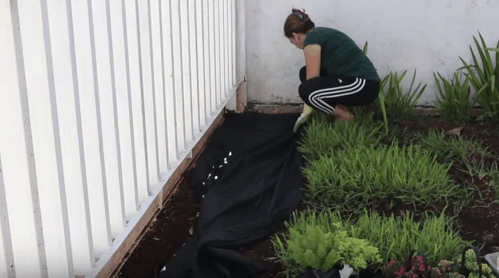 Do fólie urobíme otvory, do ktorých vložíme rastliny.