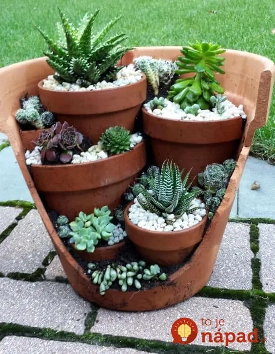 Perfektné nápady do záhrady a a terasu zo starých črepníkov.