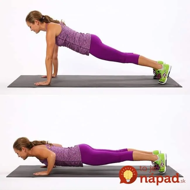 Ak chcete správne klikovať, základom je východisková pozícia ako pri doske a následné stlačenie paží tak, aby ste šli k zemi. Najdôležitejšie je, aby bol váš chrbát, panva a nohy v jednej priamke. Ďalším krokom je vrátiť sa do východiskovej polohy tak pomaly, ako je to možné.