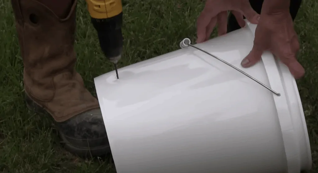 Rovnaký počet dier vyvŕtame po obvode vedra vo výške približne 5 centimetrov od jeho dna.
