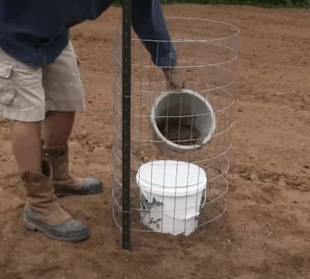 Z pletiva odstrihneme kus potrebnej dĺžky a pomocou viazacieho drôtu z neho vytvoríme oporný valec – hniezdo.