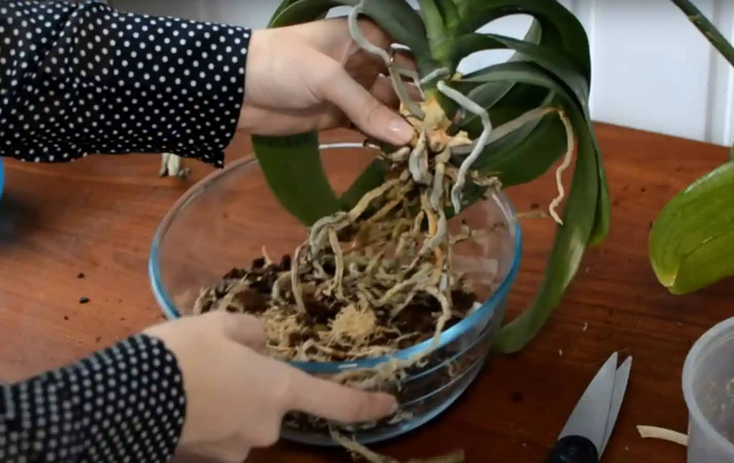 Orchideu vysádzajte iba do vlhkého substrátu, korene neutláčajte.