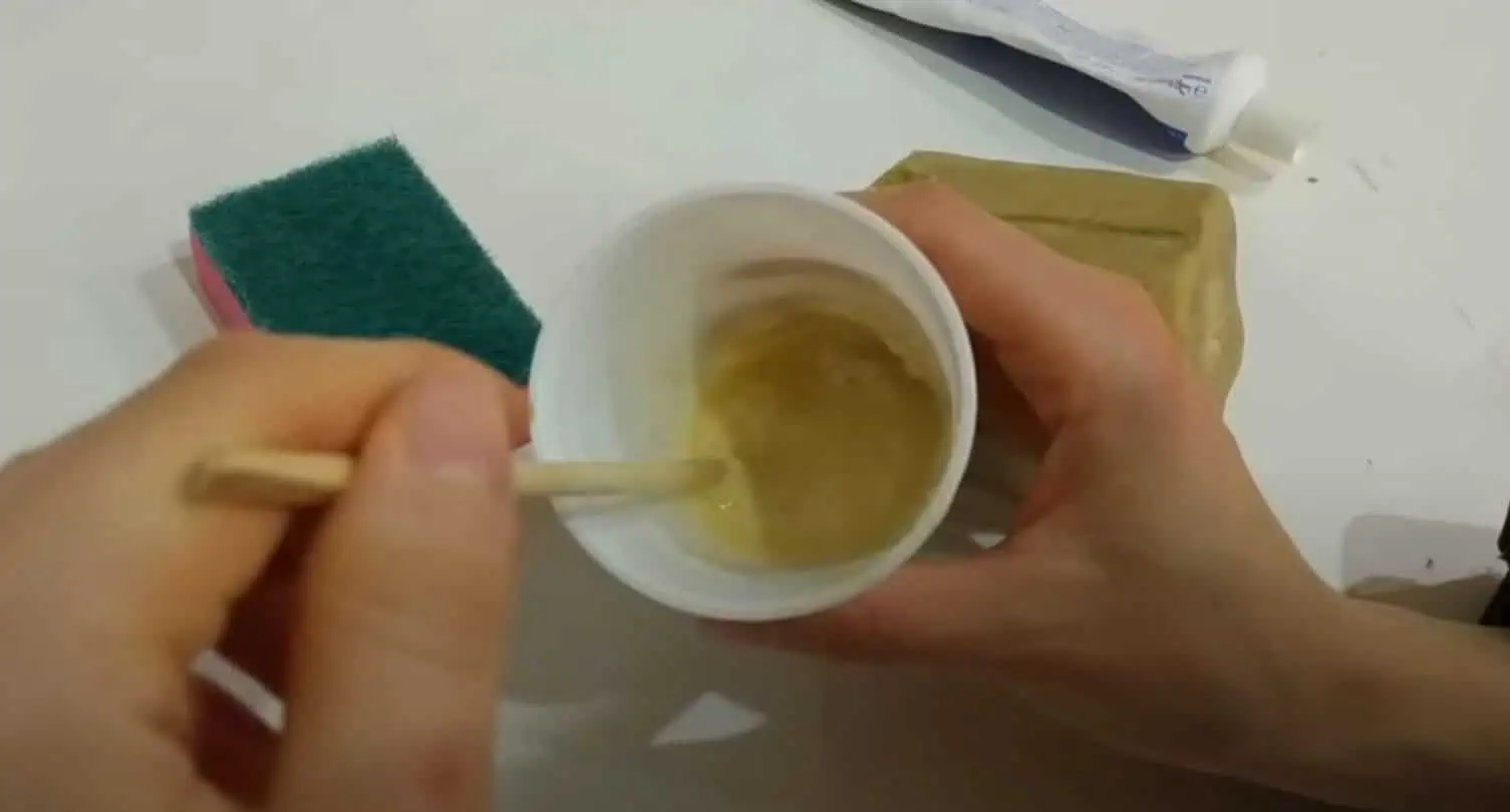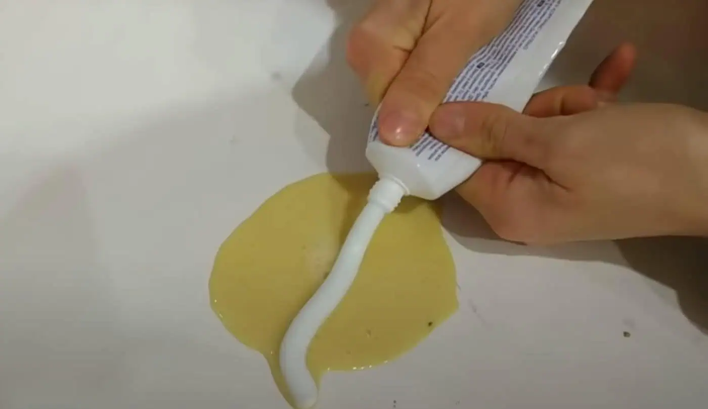 Trochu tejto hmoty vylejeme na parapet, na túto zmes vytlačíme malé množstvo zubnej pasty.