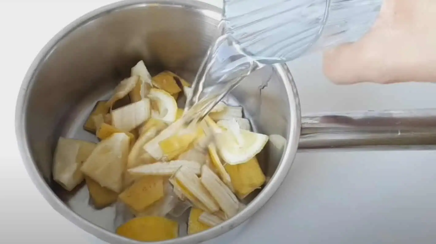 Všetky pokrájané šupy vložíme do hrnca a zalejeme vodou.