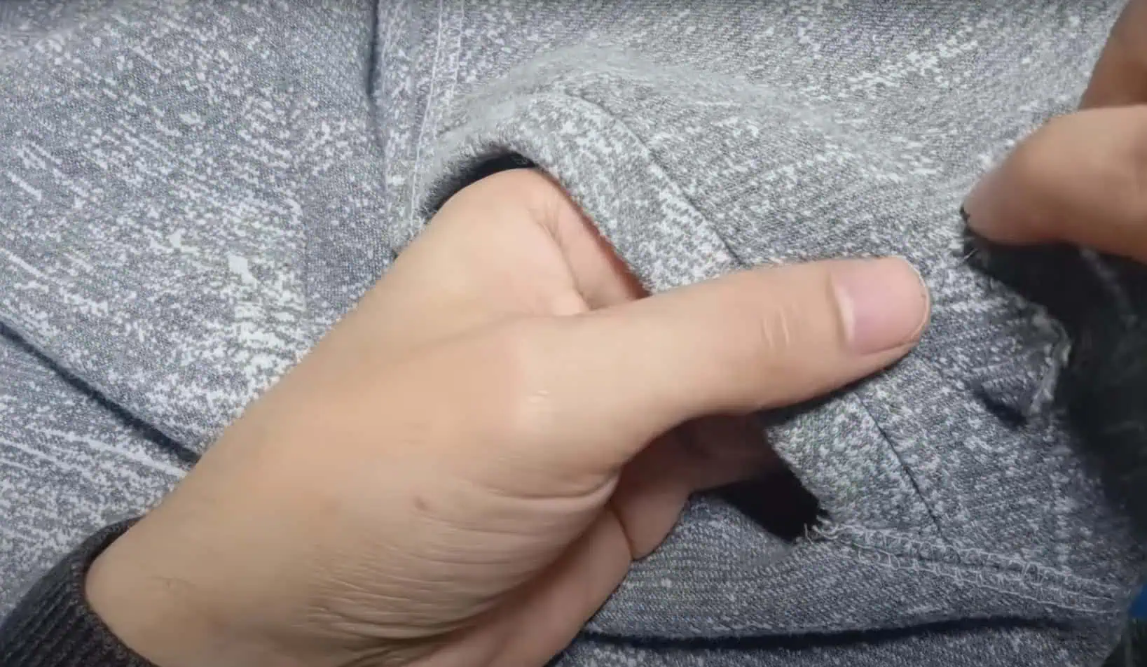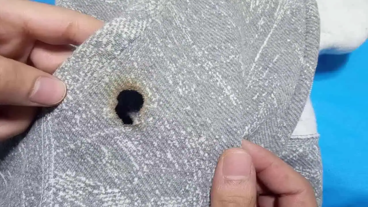 Tento trik najlepšie funguje pri vzorovaných látkach s nepravidelným vzorom, avšak pri menších dierkach môžete skúsiť tento postup aj na jednofarebných odevoch.