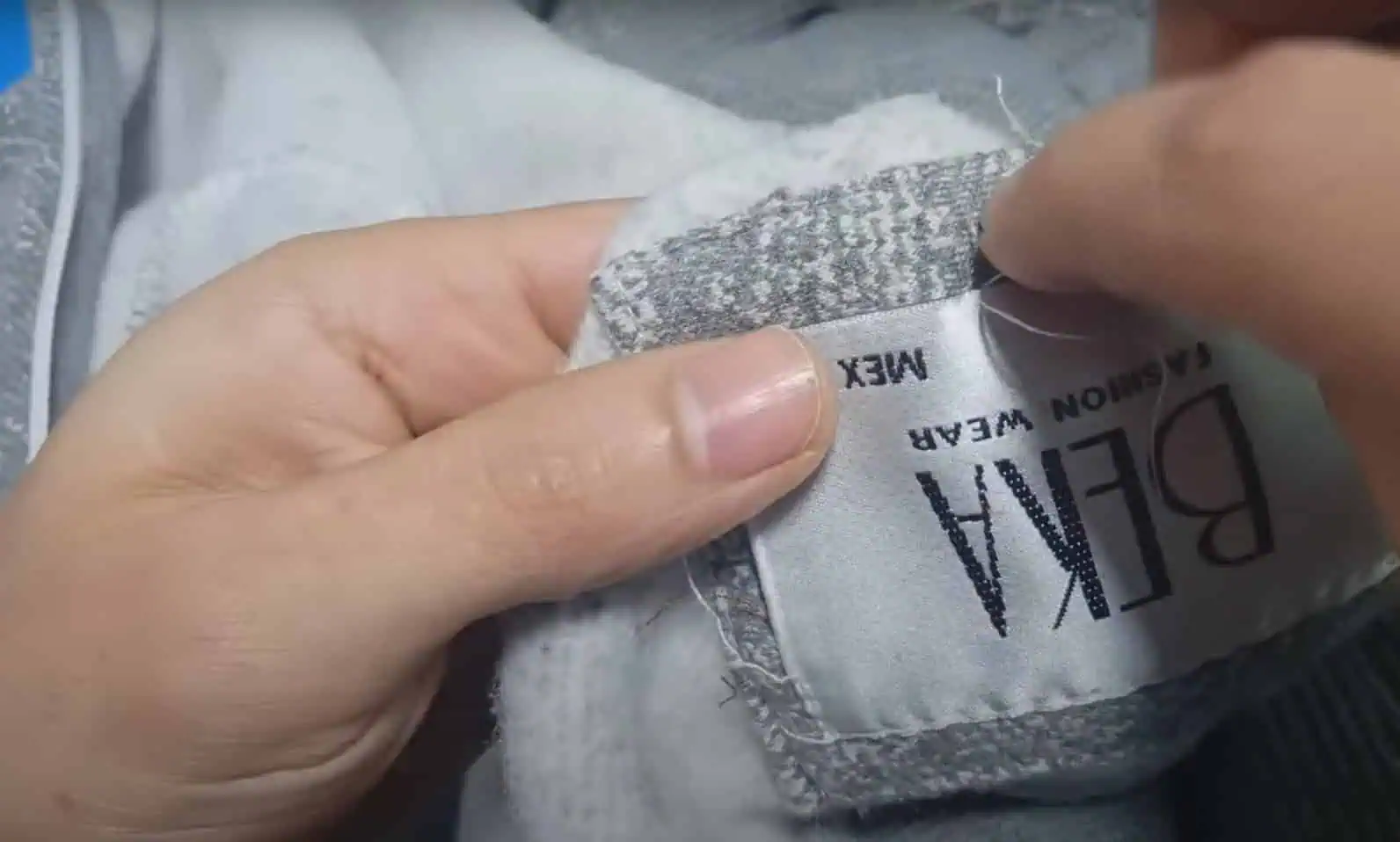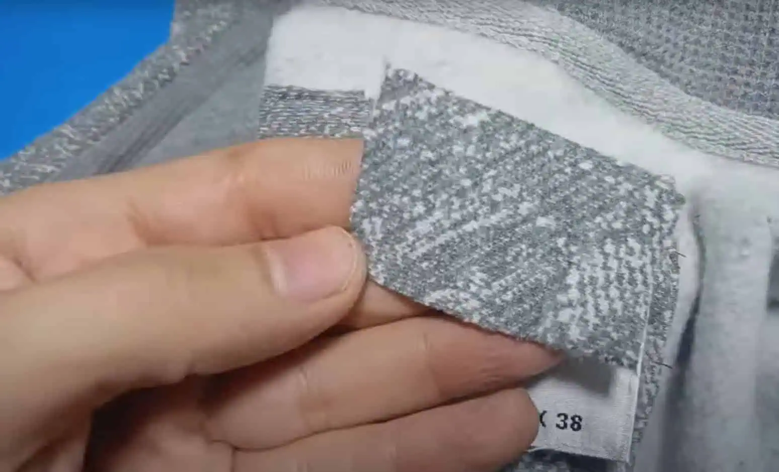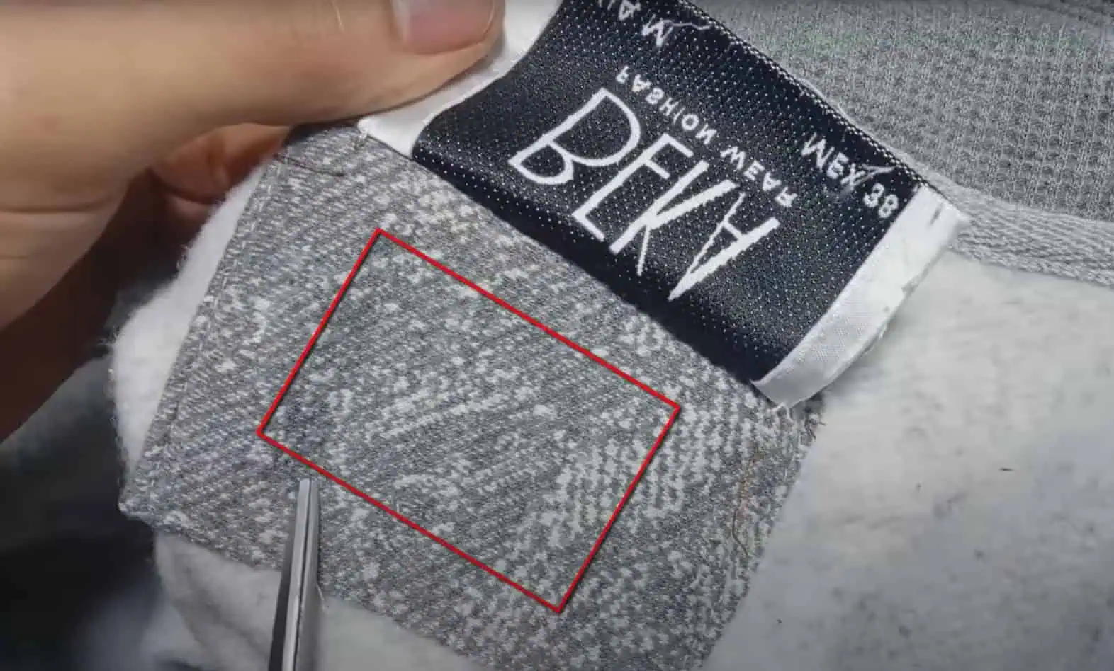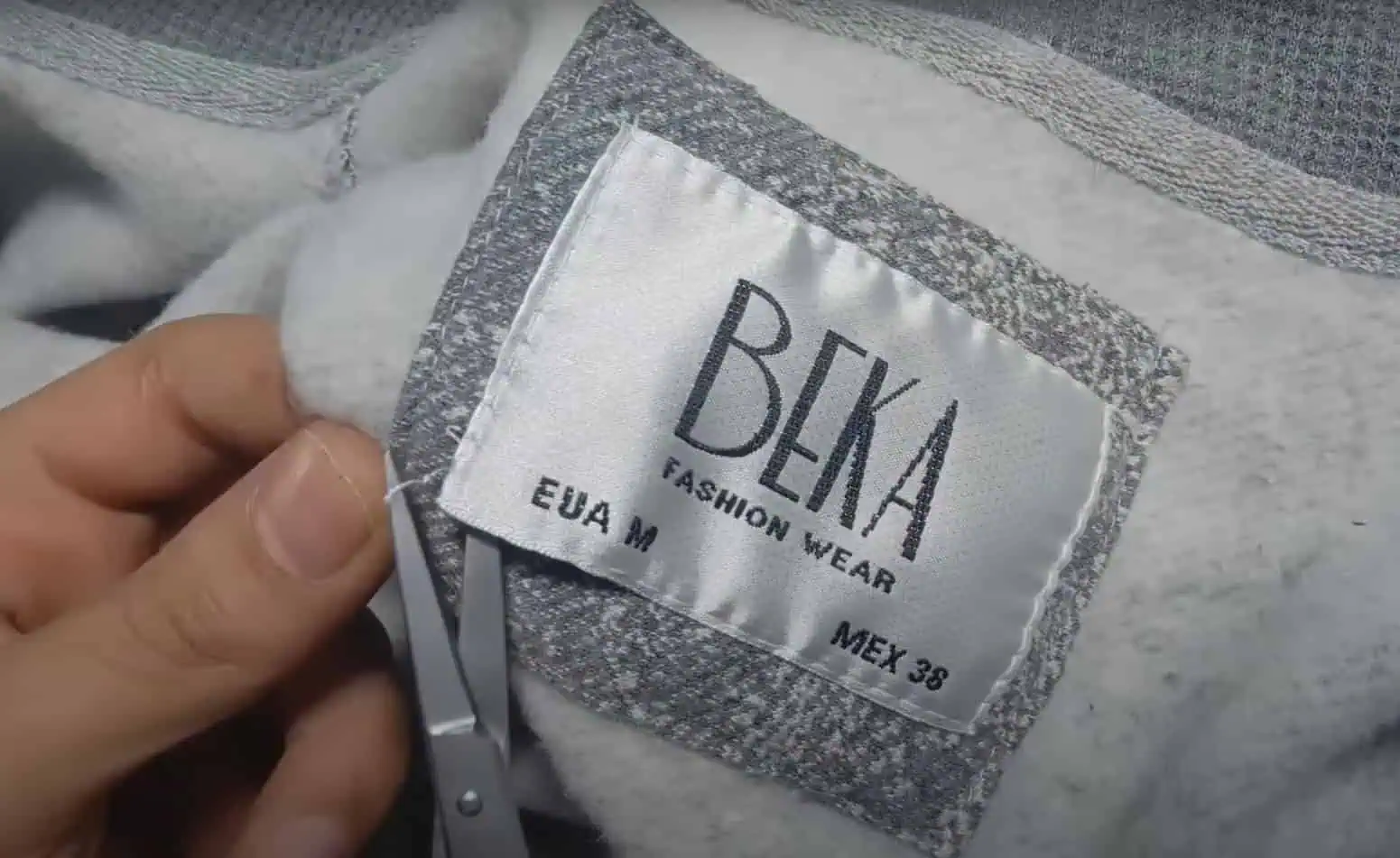 Teraz si odpárame štítok na krku, pod ktorým zvykne byť nášivka z rovnakej látky, z ktorej je ušitý vrchný kus odevu.