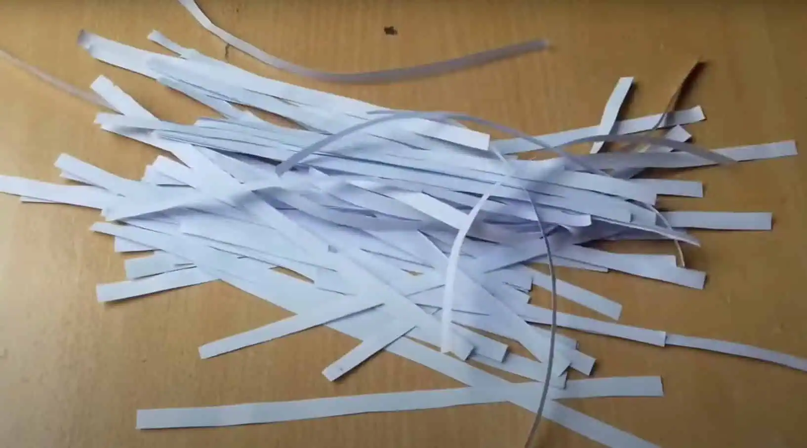 Vzniknutú časť preložíme na polovicu ešte 3- krát tou dlhšou stranou, aby nám vznikol tenký prúžok a narežeme ho orezávačom tak, aby nám vznikli samostatné pásy papiera.