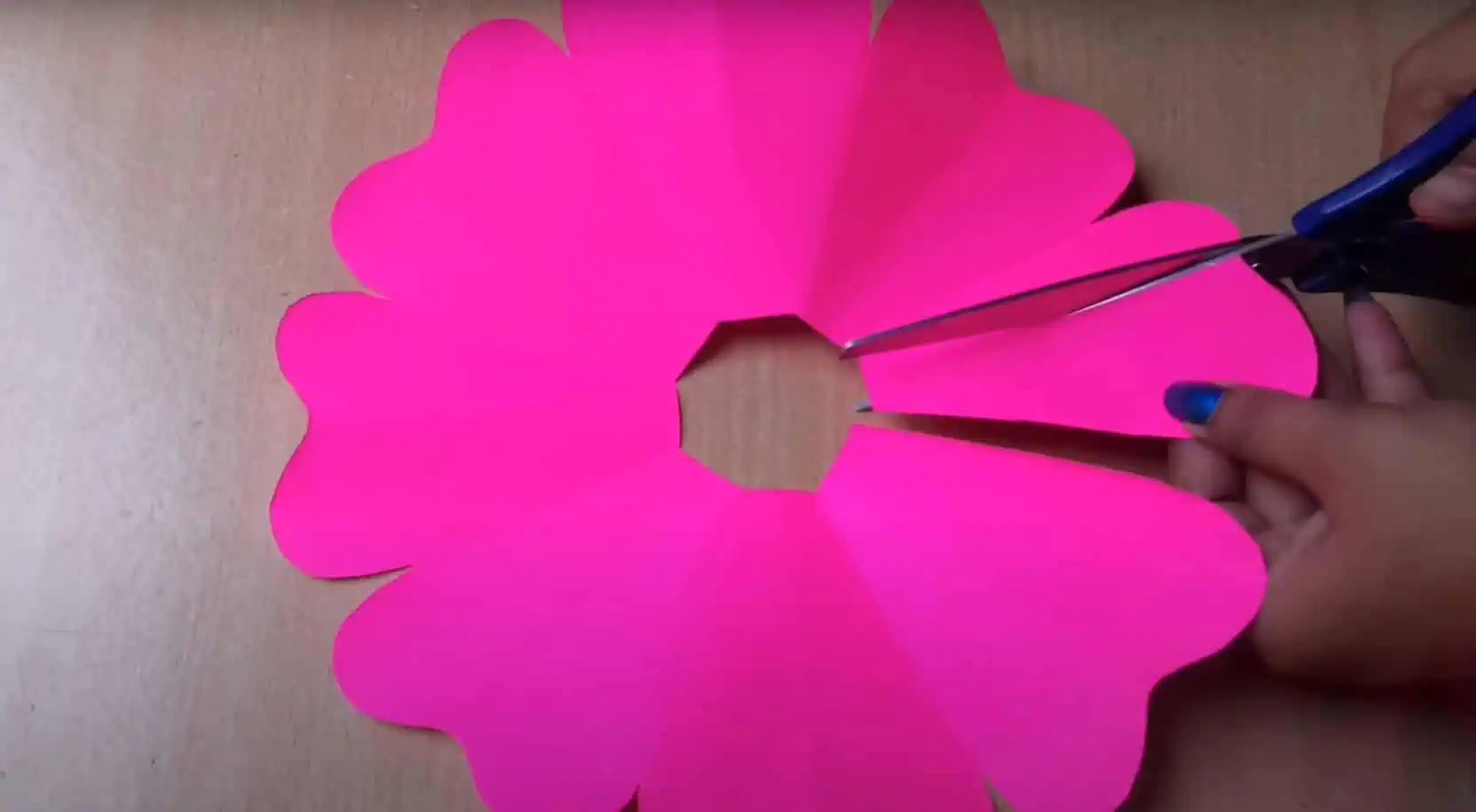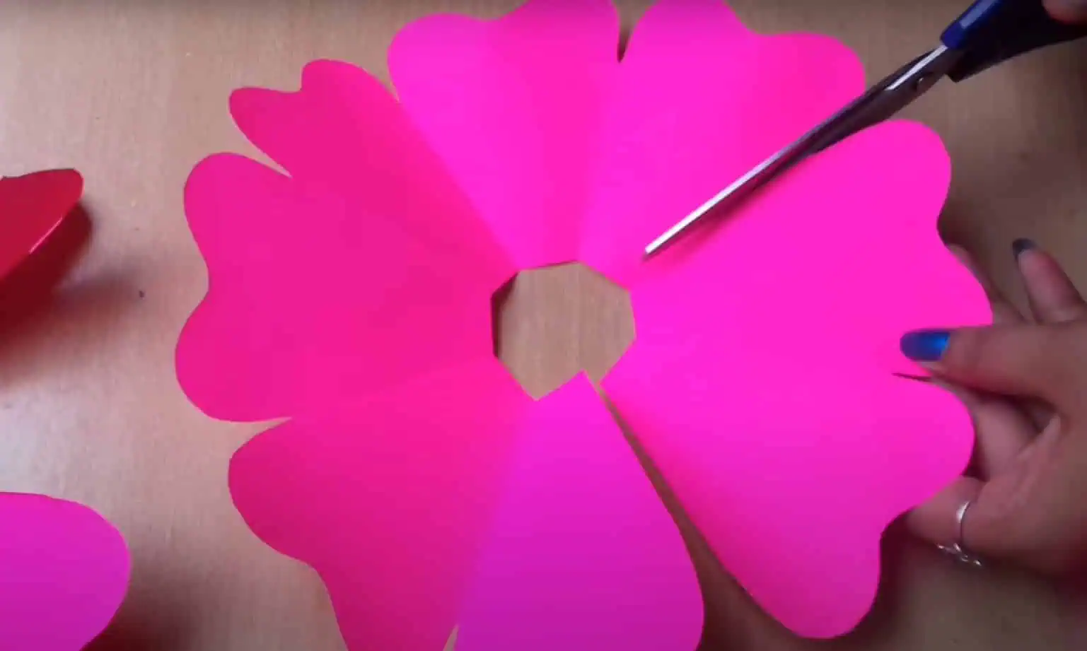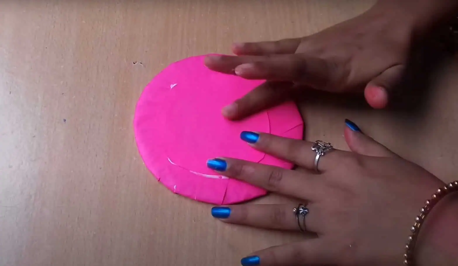 Pripravte si z ružového papiera kruh s priemerom 24 cm.