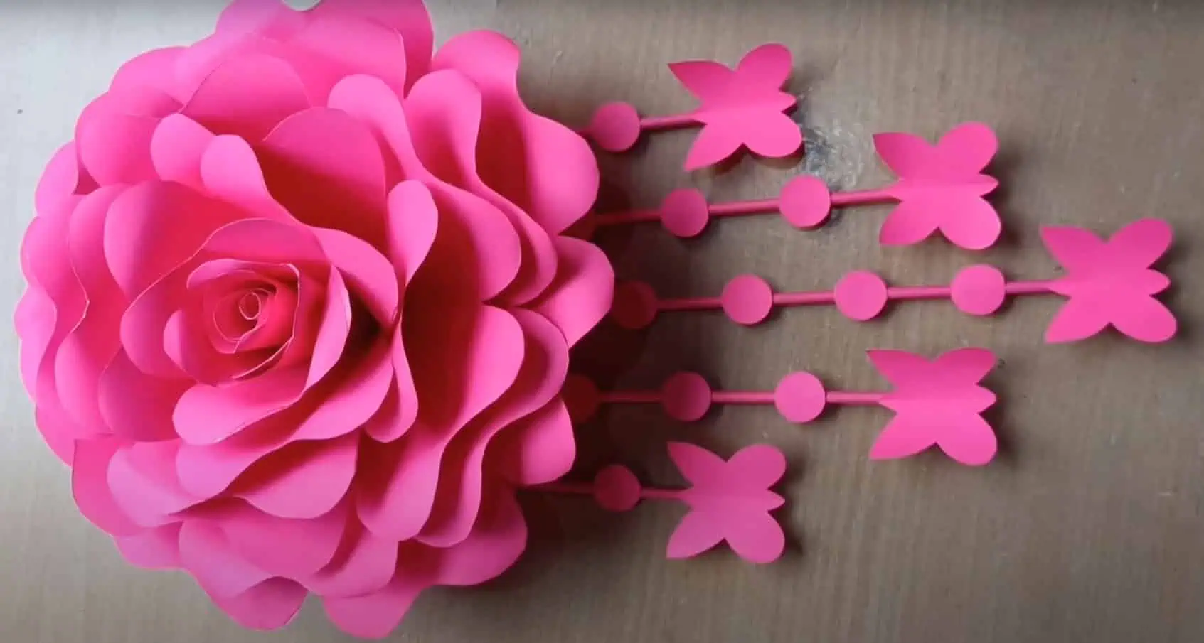 Teraz už len zostavíme kvet pomocou lepiacej pištole, zozadu môžeme nalepiť špajdle obalené ružovým papierom a tie ozdobíme napríklad vystrihnutými motýľmi.