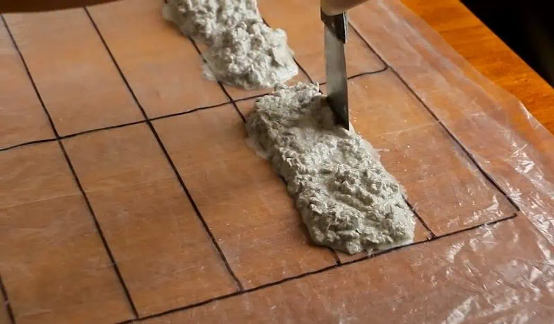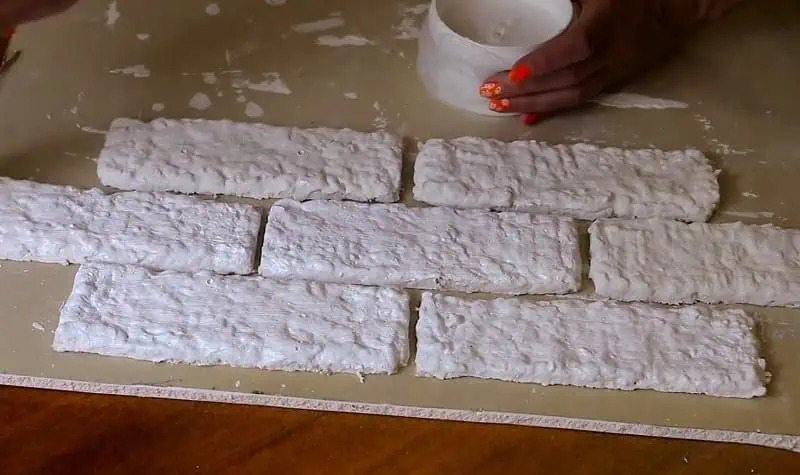 Pomocou stierky vytvorte jednotlivé tehly. Odstráňte prebytočnú vodu pomocou papierových utierok.
