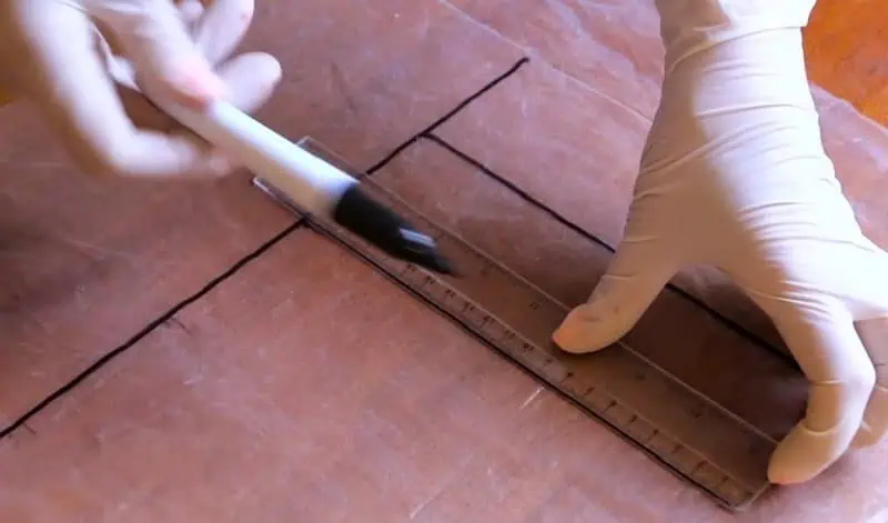 Roztiahnite igelitovú fóliu na rovný povrch a nakreslite na ňu línie pre budúce tehly.