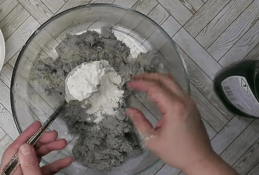 Potom pridáme niekoľko lyžíc múky a znova premiešame, kým nie je zmes hladká.