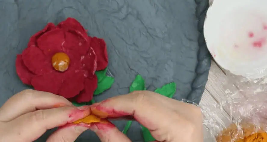 Ak chcete vytvoriť napríklad takéto ruže, najprv si vytvoríme vonkajší rad okvetných lístkov, pričom ich lepíme jeden po druhom do kruhu.