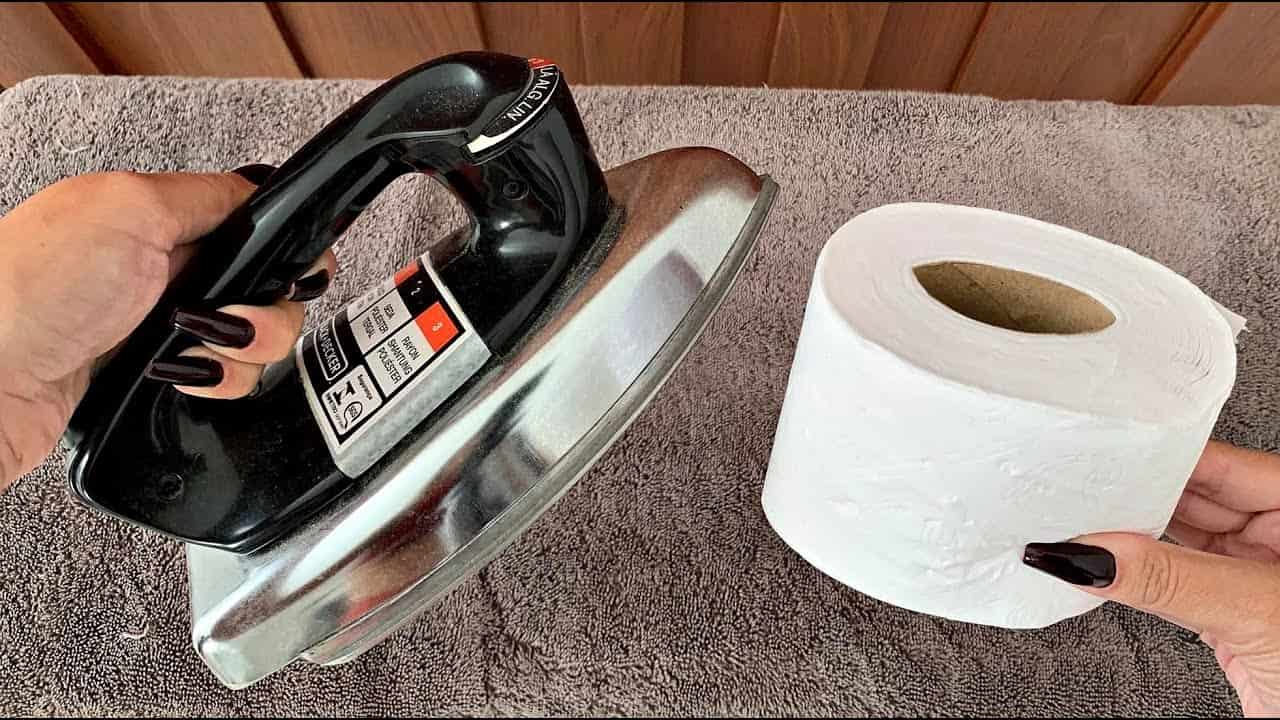 Žehličku necháme zohriať ako zvyčajne a cez toaletný papier prechádzame, ako keby sme klasicky žehlili.