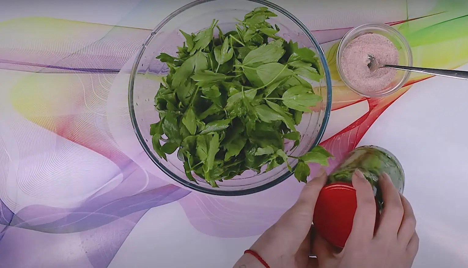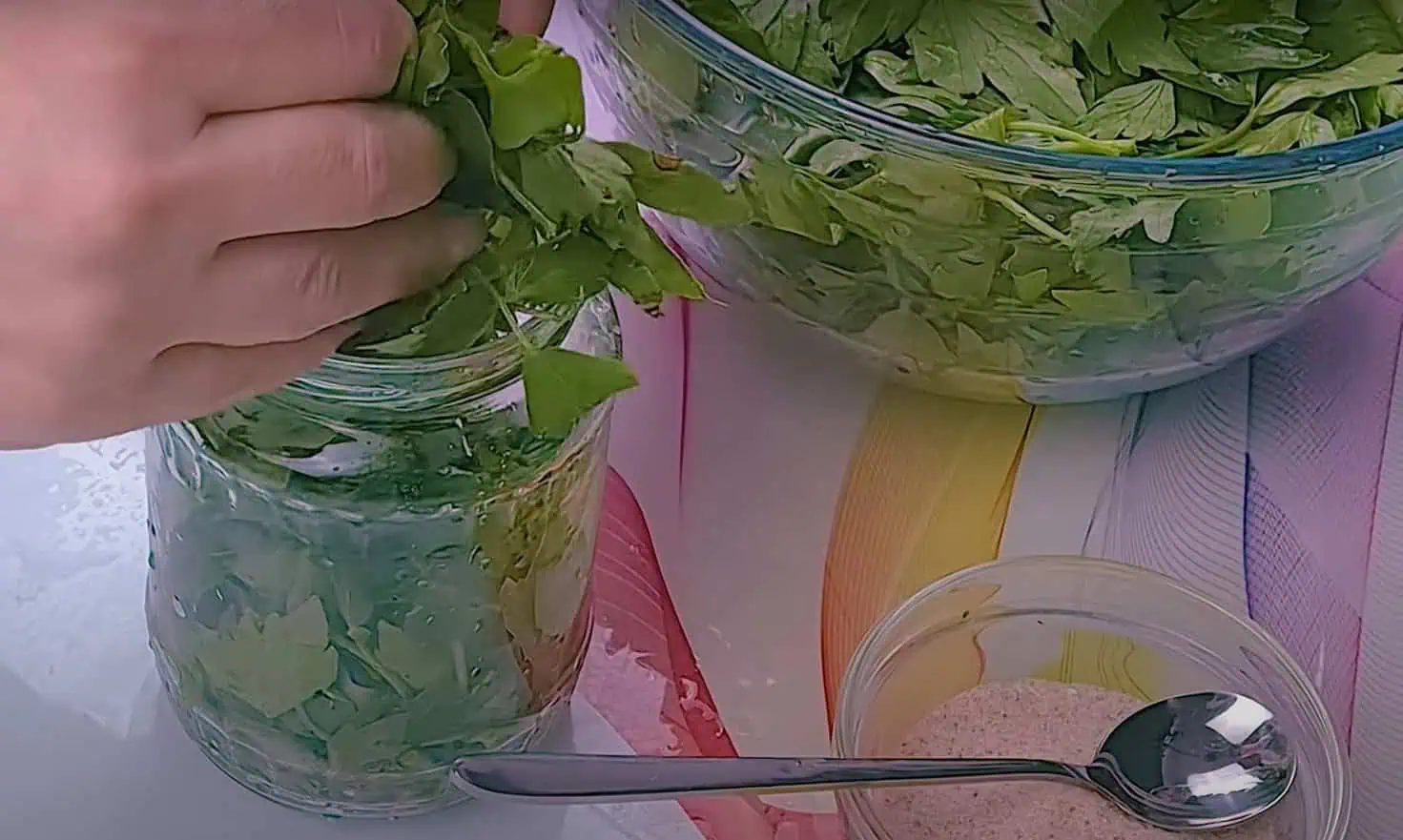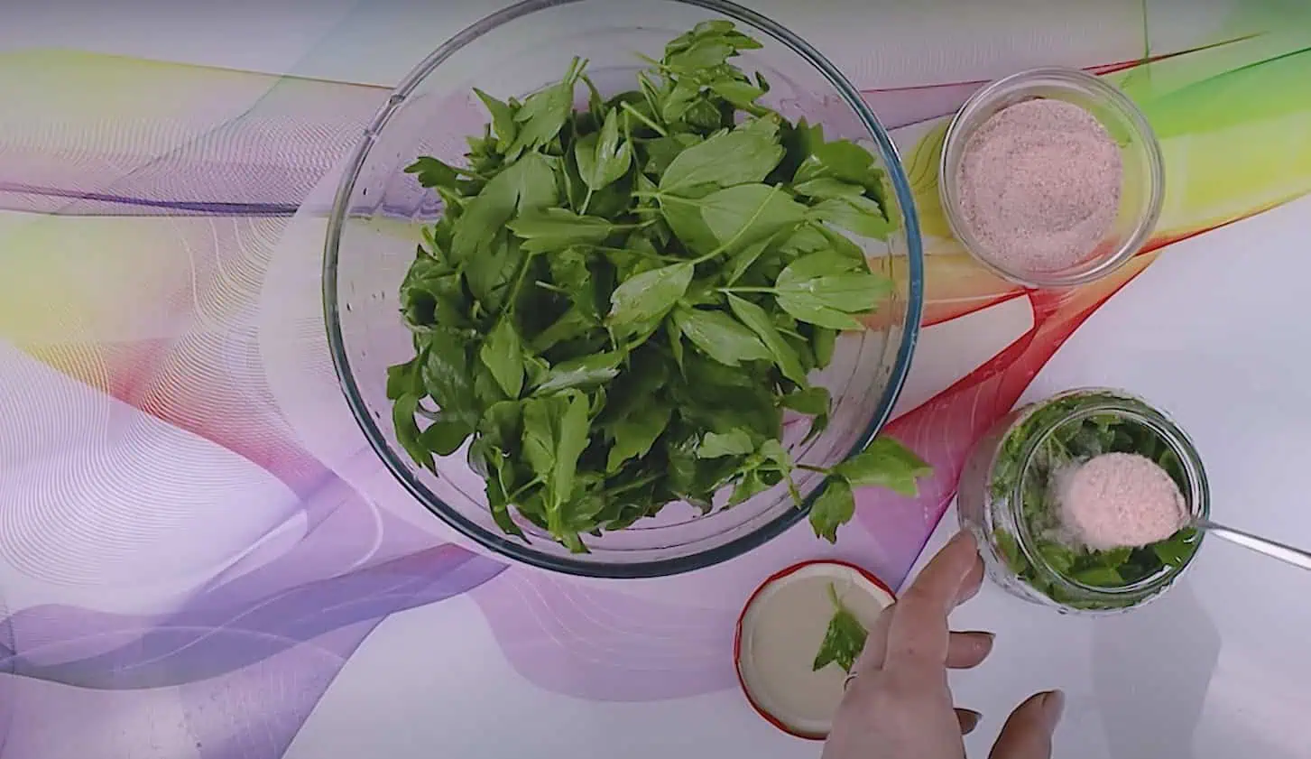 Teraz si umyté a usušené lístky ligurčeka vložíme do čistého pohára.