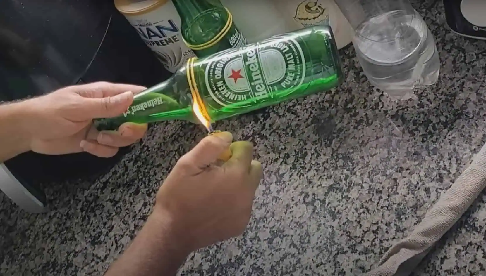 Fľašu otáčame tak, aby obhorel gél okolo celej fľaše.