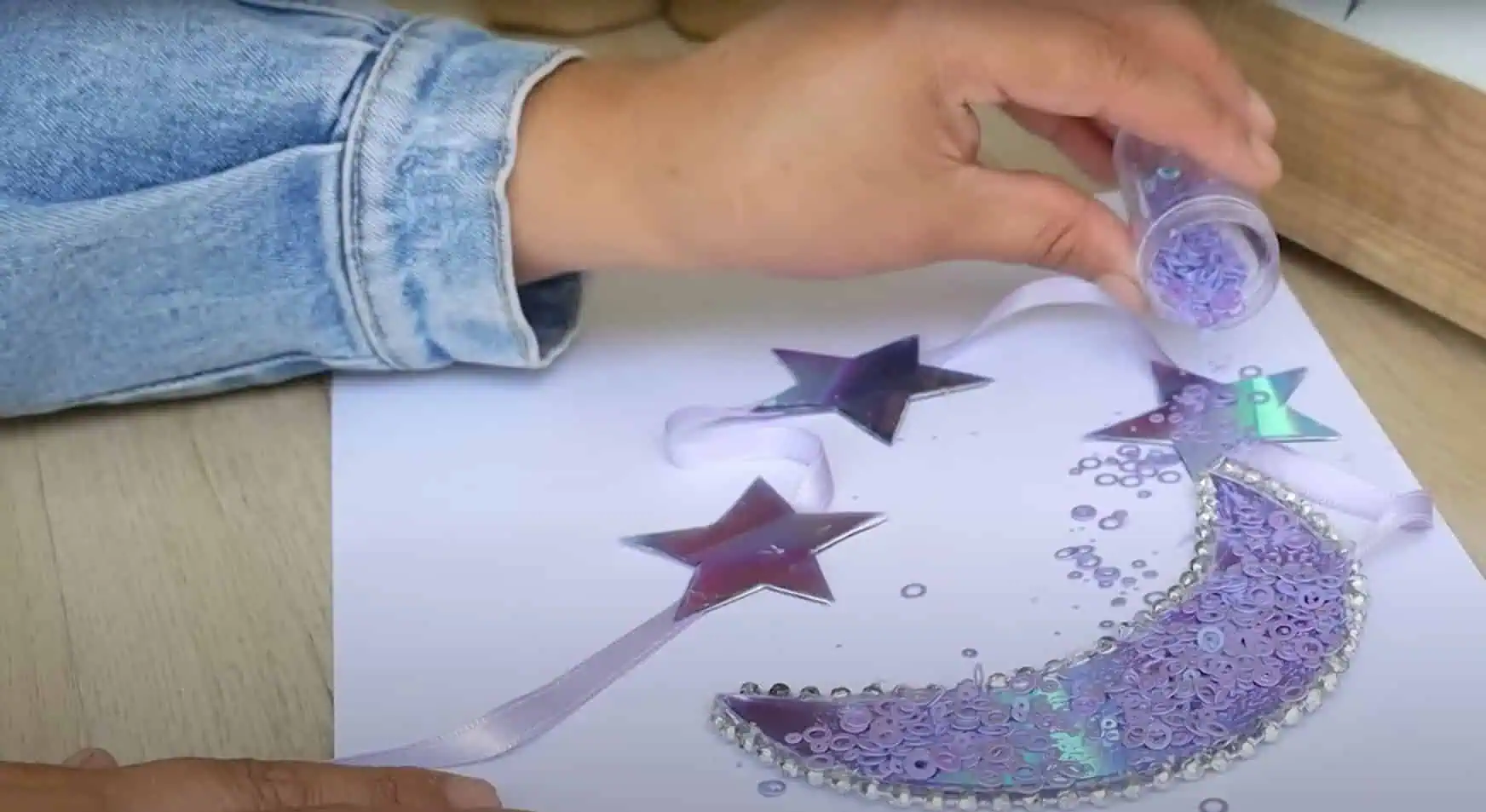 Na ten nakoniec upevníme stuhu s mesiacom a hviezdami.