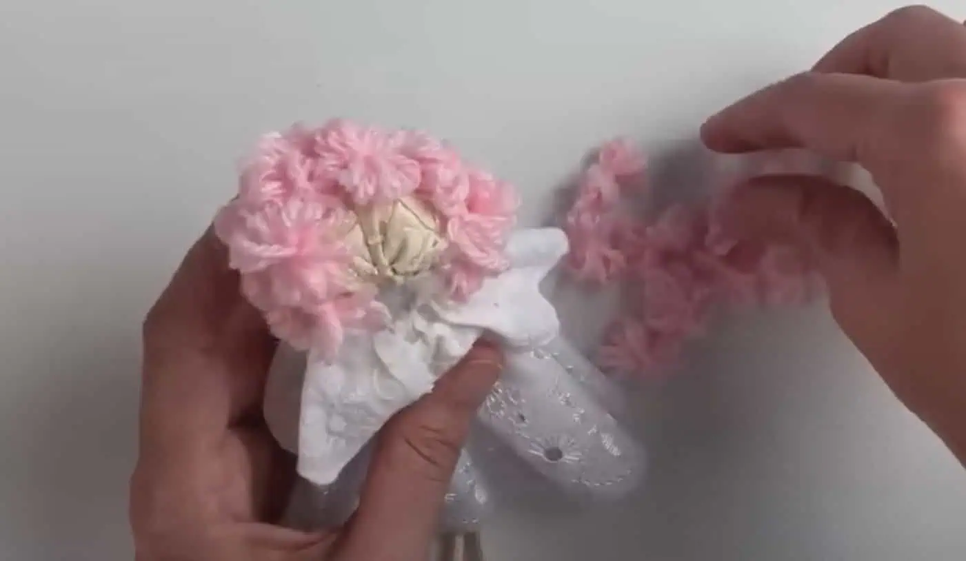 Z bavlny si vytvoríme vlasy, ktoré prilepíme na hlavu.