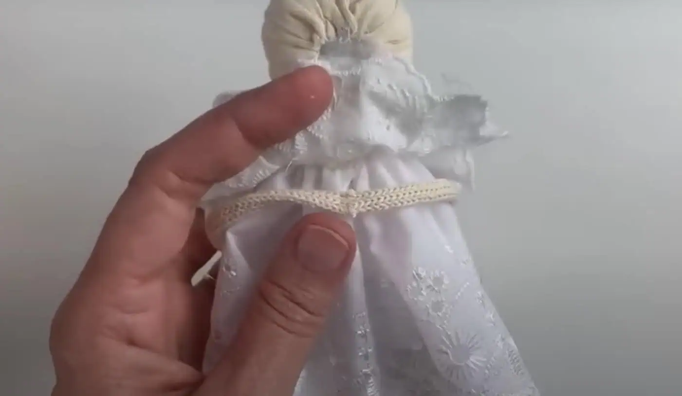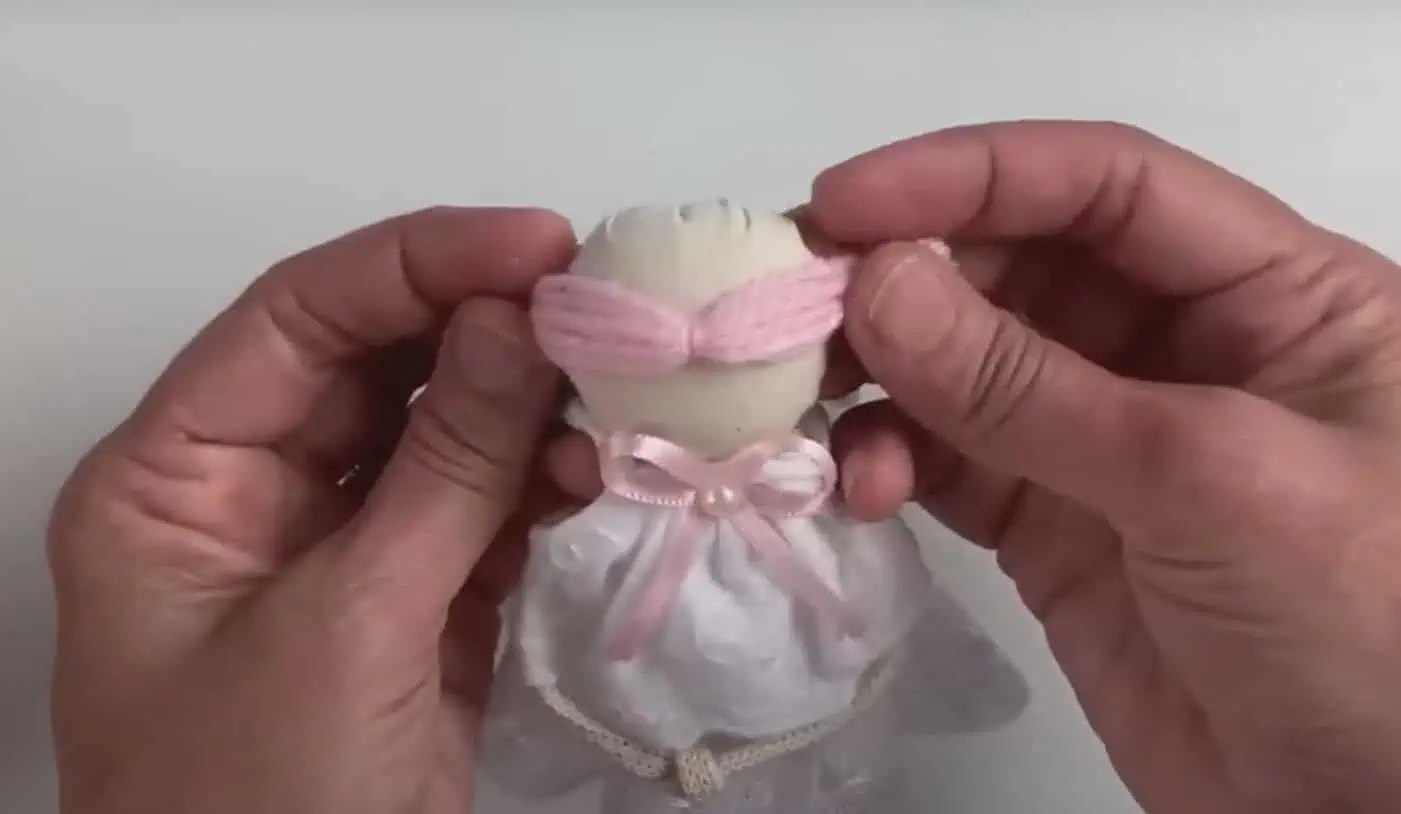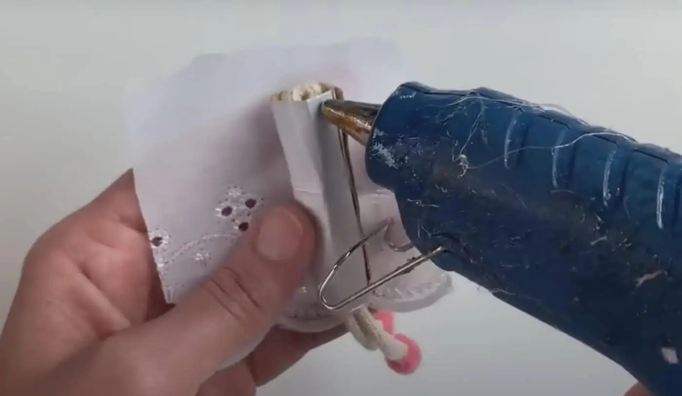 Prevlečieme cez telo a vzadu upevníme pomocou lepiacej pištole.