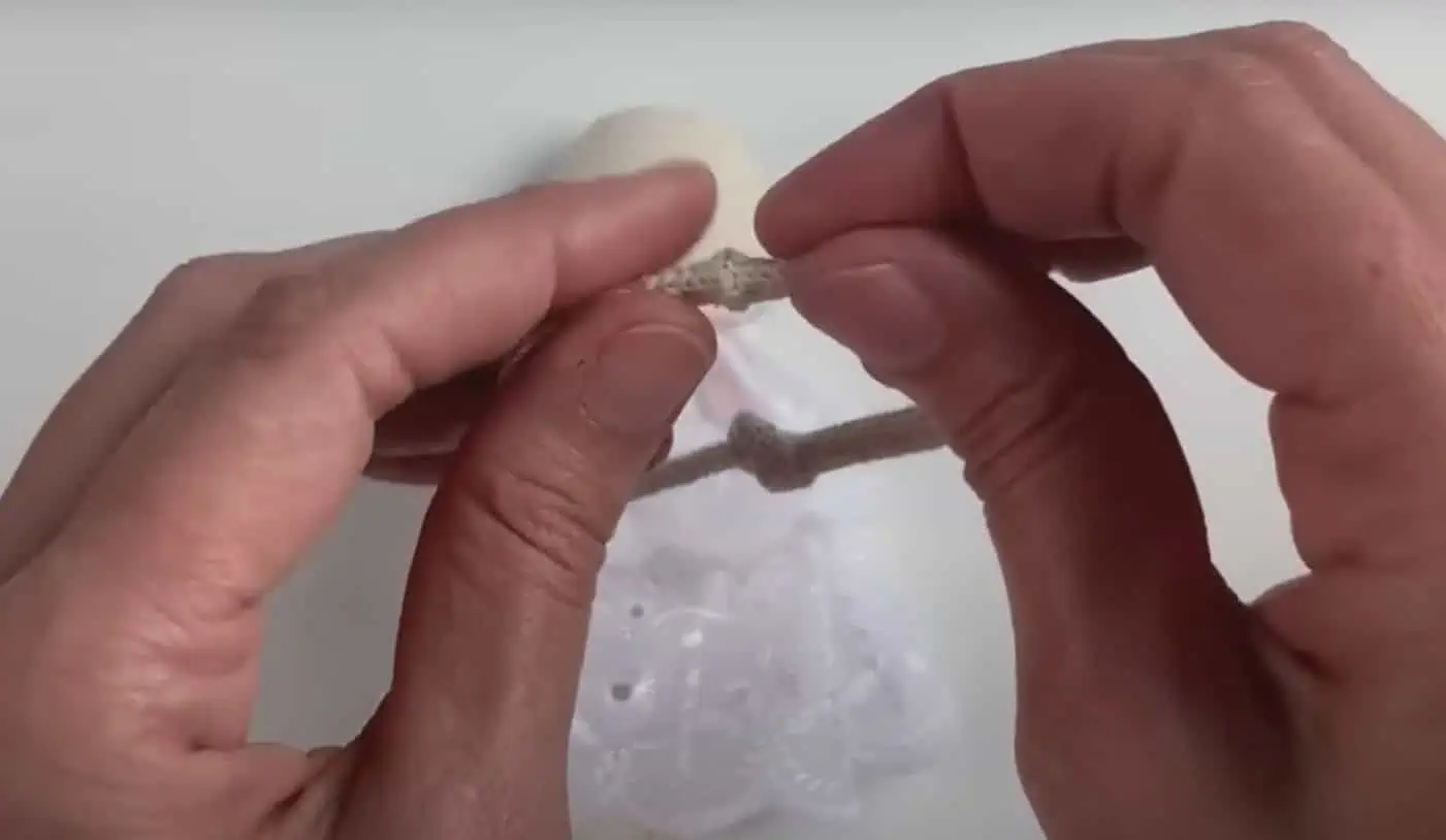 Obalíme konce na šnúrke a uviažeme niťou.