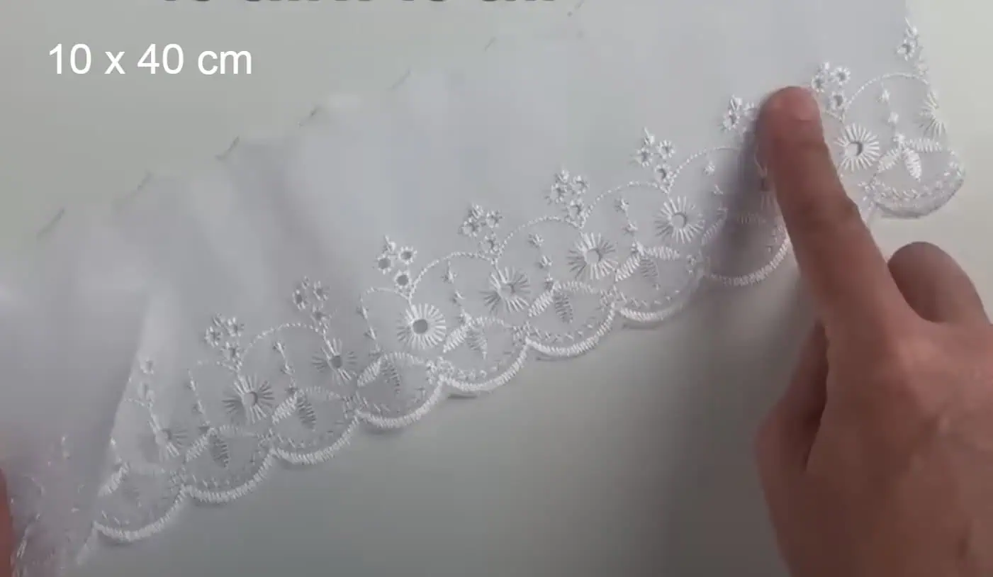 kúsok bielej látky s krajkou