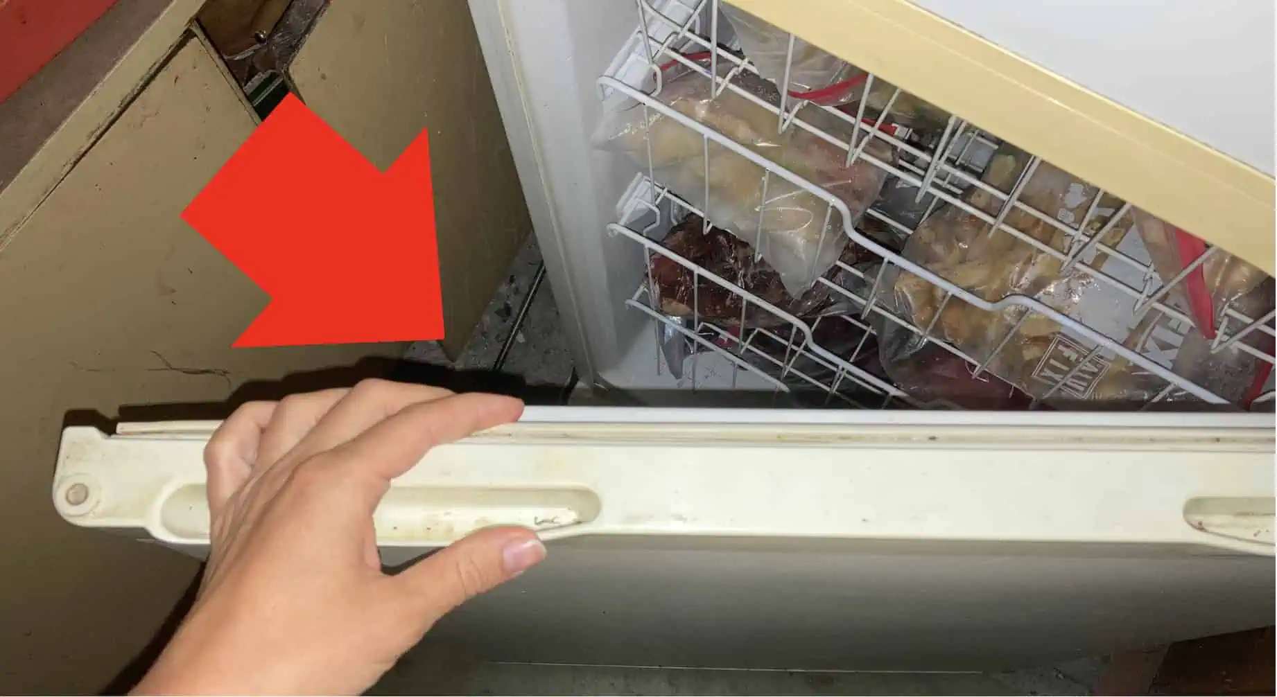 Takto vyzerá spodné tesnenie mrazničky v porovnaní s horným gumovým tesnením pred opravením.