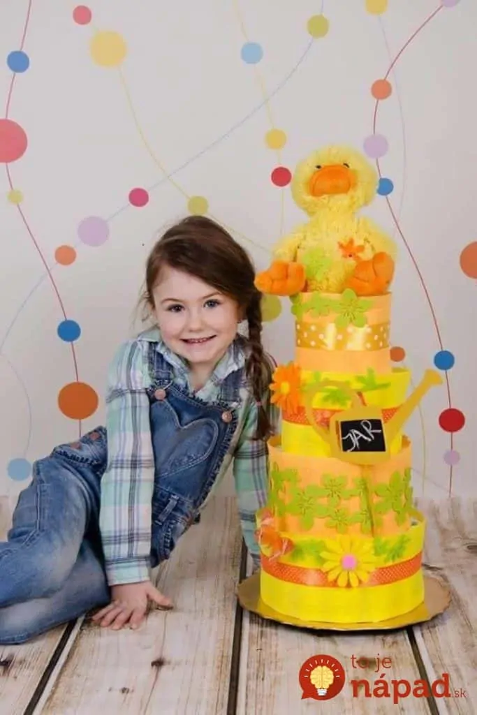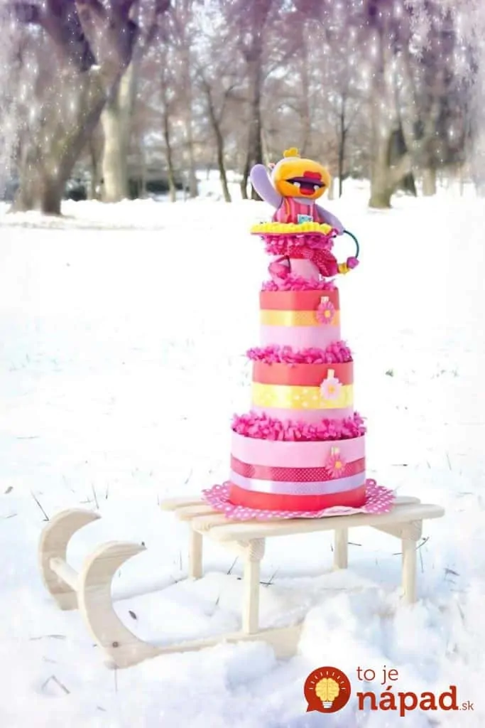 Petra sa rozhodla vyrobiť originálnu plienkovú tortičku a keďže hneď prvý kúsok sa jej podaril nad očakávania, vo výrobe pokračuje dodnes. „Tortičky robím poschodové, približne 3-7 poschodí, do ktorých sa zmestí 100 kusov plienok, aby z nich mala mamička adekvátny efekt. Na vrch dávam navyše originálnu hračku či plyšáka a tortičku dekorujem,“ popísala pre server To je nápad! Petra.
