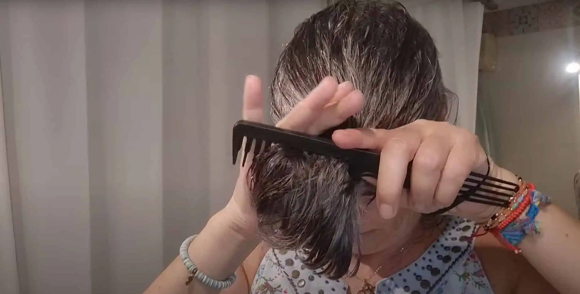 Predné vlasy sčešte dopredu a zagumičkujte.