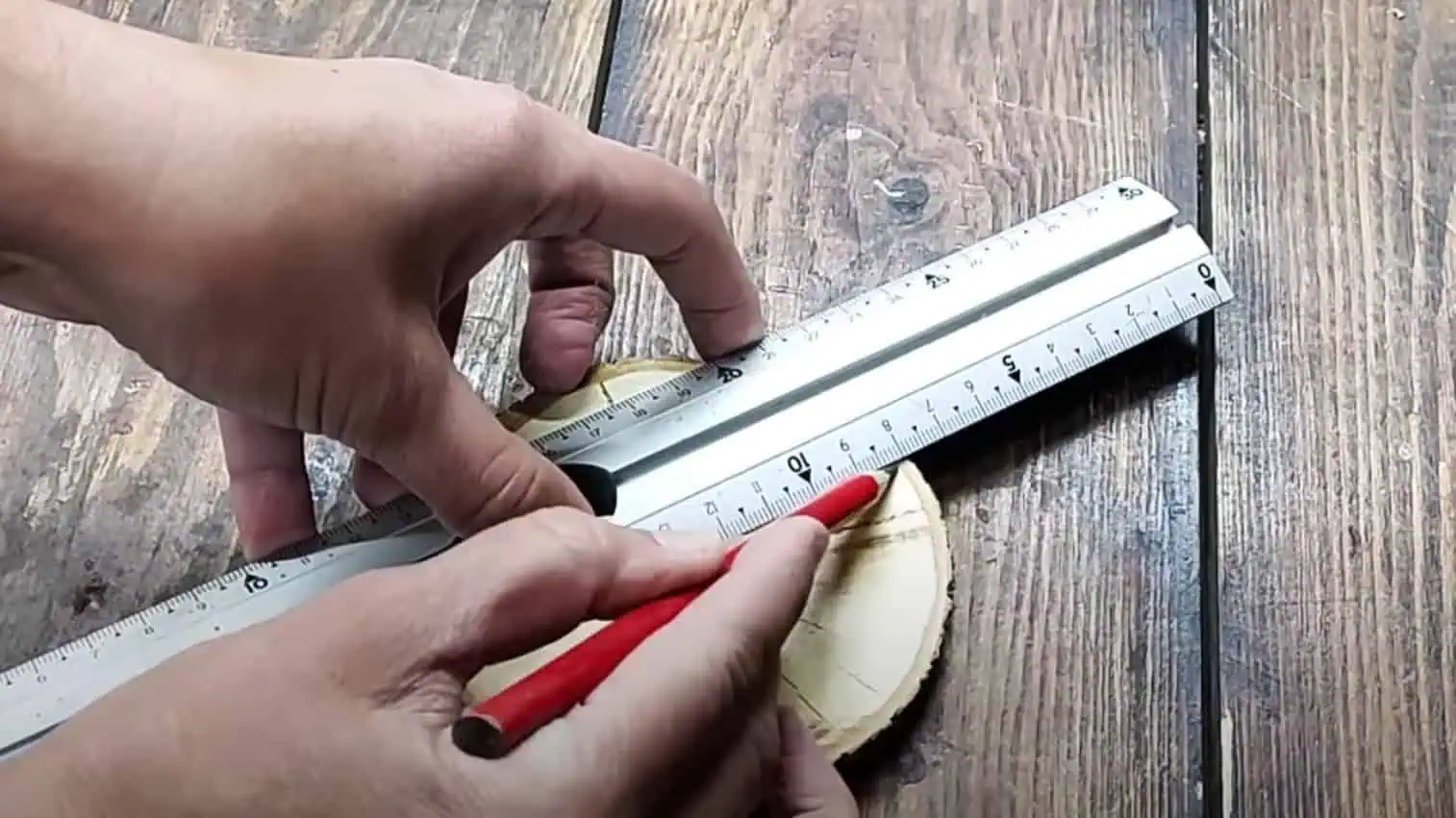 Vymerajte si požadované rozmery, aby ste následne mohli kruhy dreva spojiť.