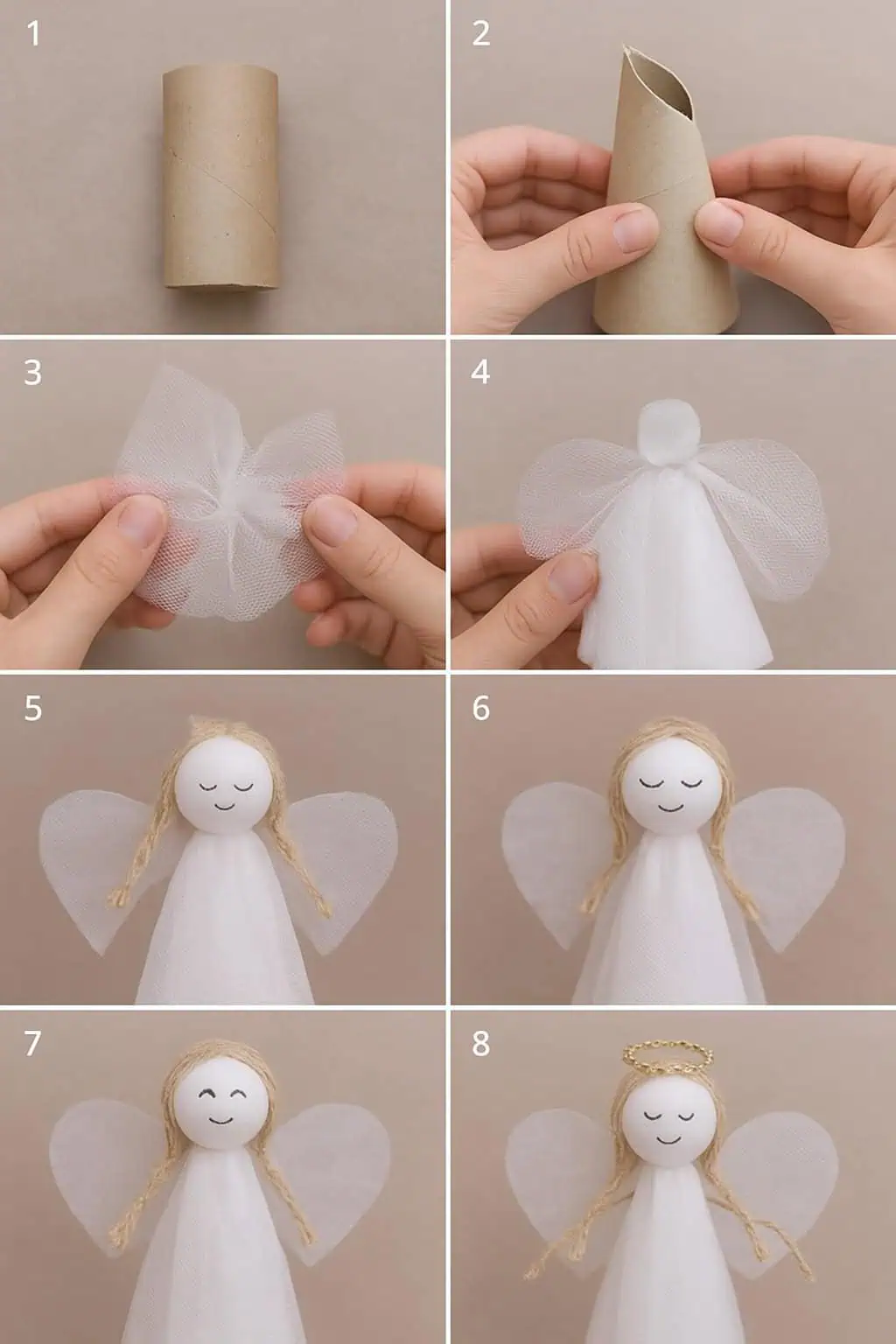 Ak hľadáte krásny, lacný a pritom efektný spôsob, ako si vytvoriť vianočnú dekoráciu vlastnými rukami, tento anjelik z rolky od toaletného papiera je ideálnym projektom.