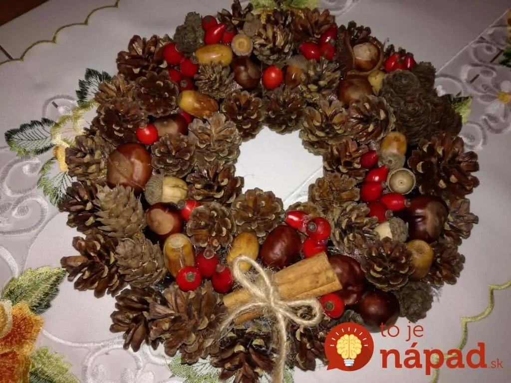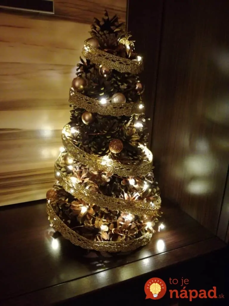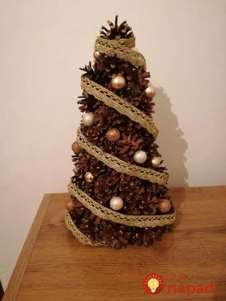 Všetko čo potrebujete sú šišky, motúz, lepidlo a základný tvar z polystyrénu alebo kartónu (stromček, alebo polystirénová guľa). Potom už len stačí dekorácie, ktoré nájdete doma a chvíľku sa môžete tešiť na túto nádheru aj vy!