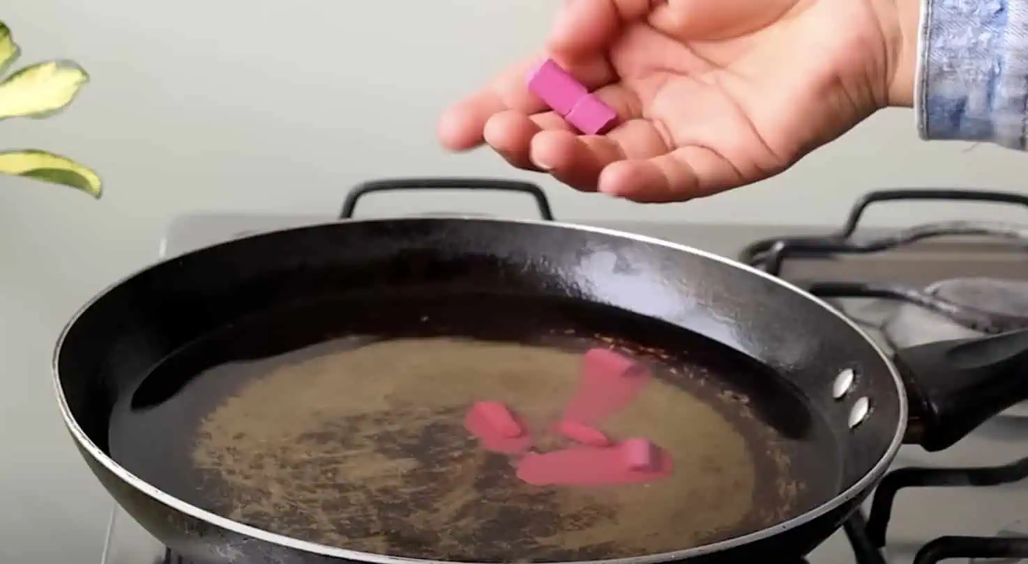 Pridáme voskovky ľubovoľnej farby, ktoré zmes zafarbia.
