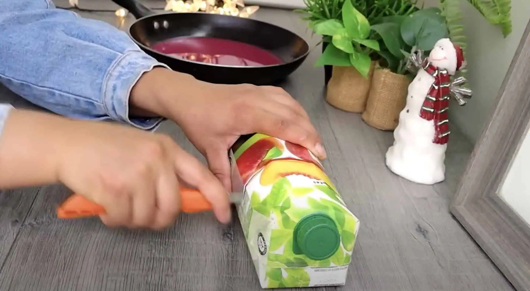 Nachystáme si prázdnu krabicu od džúsu a rozpolíme ju.