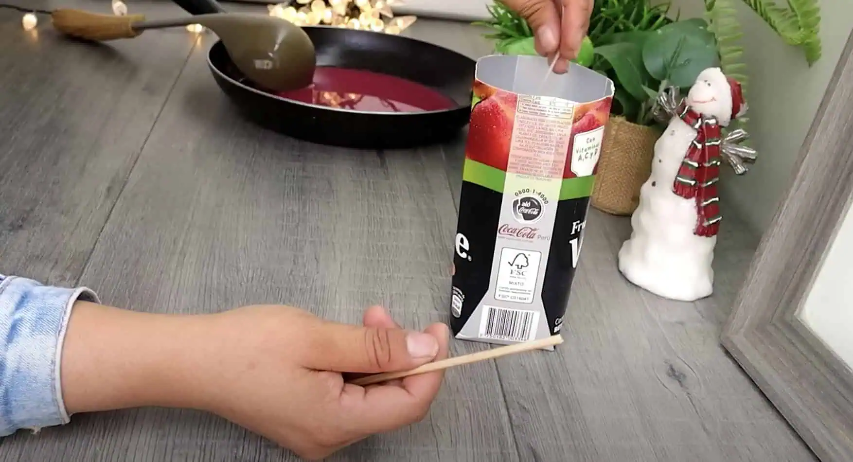 Pomocou špáradla upevníme knôt tak, aby bol približne v strede krabice.