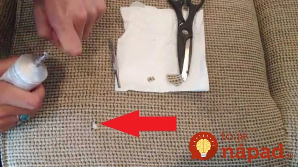 Zamaskovať ju môžete úplne bez šitia. Pripravte si kúsok materiálu na podklad, kúsok látky – vezmete ju napríklad zo zadnej, alebo spodnej časti gauča, prípadne zo vzorkovníka, ktorý je niekedy priložený k nábytku. Tiež si nachystajte špáradlo a lepidlo na textil. Podrobný návod nájdete v priloženom videu. Ešte dodáme, že rovnakým spôsobom môžete opraviť aj koberec.