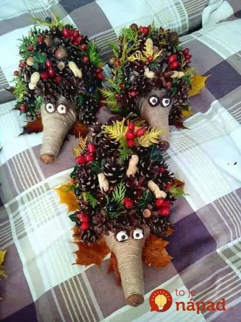 Úžasné jesenné nápady na krásne dekorácie – ježkov. Môžete ich vyrobiť z celkom bežných vecí a jesenných materiálov, ktoré sú k dispozícií zadarmo. prinášame vám najkrajšie nápady: