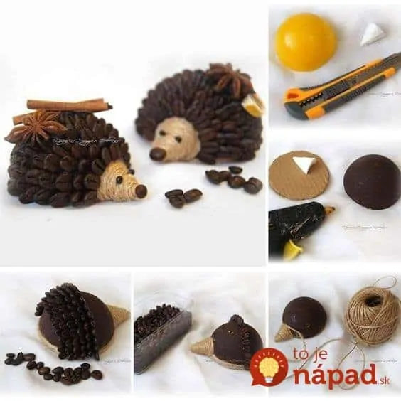 3. Voňaví ježkovia z kávy – telo z polystyrénu, alebo kartónu a motúzu