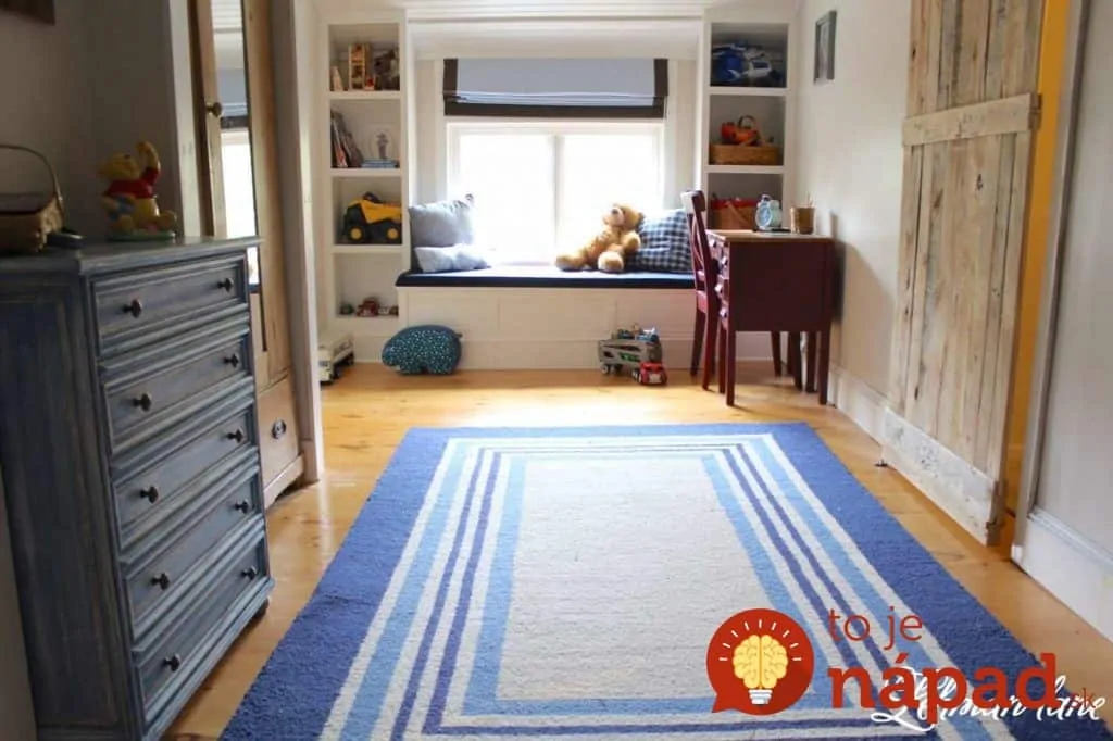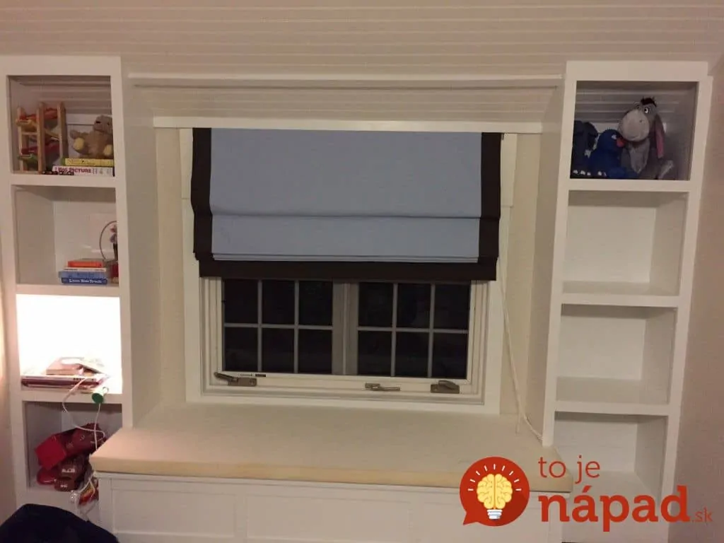 Krásny nápad pre každého, kto v byte bojuje o každý centimeter priestoru. Manželia si v byte vyhradili miesto pre detskú izbu, avšak v miestnosti bol priestor len na posteľ, skrinku a malý stolík. Kedže v izbe nebol priestor nazvyš, manžel dostal perfektný nápad, ako využiť priestor okolo okien a vytvoriť pohodlnú pohovku s úložným priestorom. Okrem toho, že tento nápad krásne vyzerá, je aj veľmi praktický. Navyše, celý projekt zvládol celkom sám a to za jediný deň. Rodine teda ušetril aj peniaze za nákup drahého nábytku.