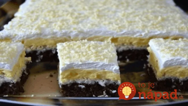Nakoniec už len poskladať. Na vychladnutý korpus nanesieme časť kokosového snehu, naň vanilkový krém a naň zvyšok snehu.