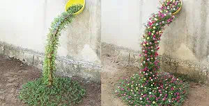 Vytvorte si vo vašej záhrade tento skvostný kvetinový vodopád podľa návodu z youtube. Ide o úžasné prekvapenie pre manželku. Potrebujeme: plastové fľaše nožnice alebo orezávač